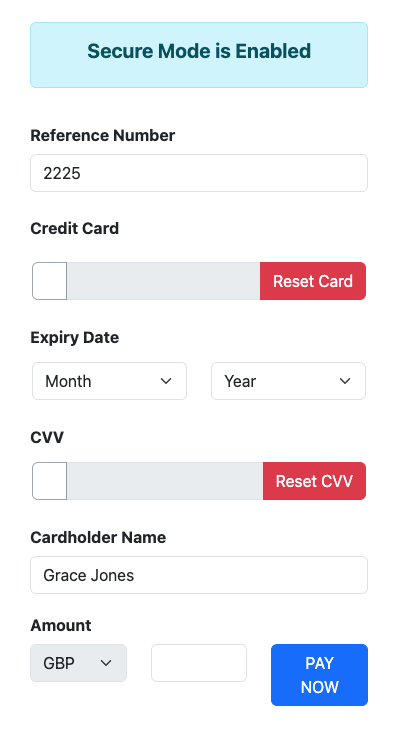 Expiry Date: Ask them to enter the 4-digit expiry date (MMYY).